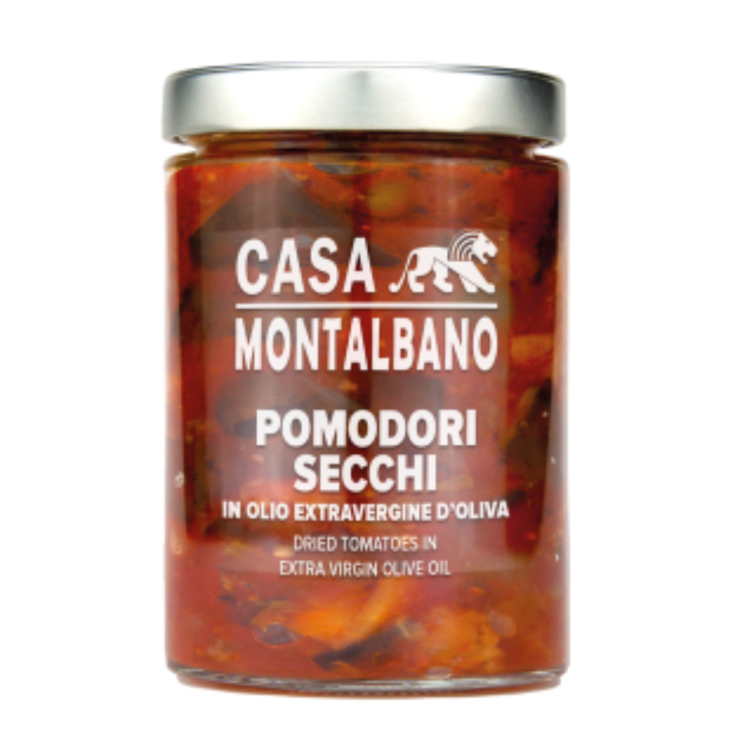 Odkryj intensywny smak Sycylii dzięki wyjątkowym pomidorom suszonym w oliwie z oliwek od renomowanej marki Casa Montalbano! Nasze pomidory, starannie suszone i zanurzone w najwyższej jakości oliwie z oliwek, zachowują świeżość i aromat sycylijskich upraw. Doskonały dodatek do sałatek, makaronów, czy jako składnik wykwintnych przekąsek. Bez dodatku sztucznych barwników ani konserwantów. Spróbuj już dziś i zanurz się w smakowej podróży na sycylijskie wybrzeże!